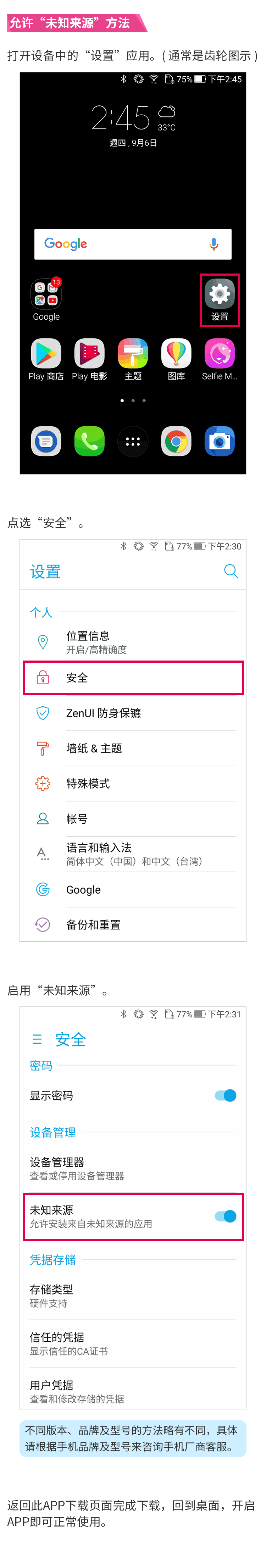 - 启用 "未知来源"详细图文说明 -